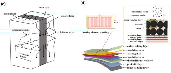 During service, integrated functional–structural anti-icing/de-icing components develop substantial thermal residual stresses and strains as a result of mismatches in the coefficients of thermal expansion between layers subjected to temperature fluctuations. This phenomenon can lead to damage, including interlaminar delamination and interfacial debonding. In particular, laminates that incorporate metallic heating layers are susceptible to accelerated damage progression due to thermo-mechanical coupling effects under thermal cycling conditions.