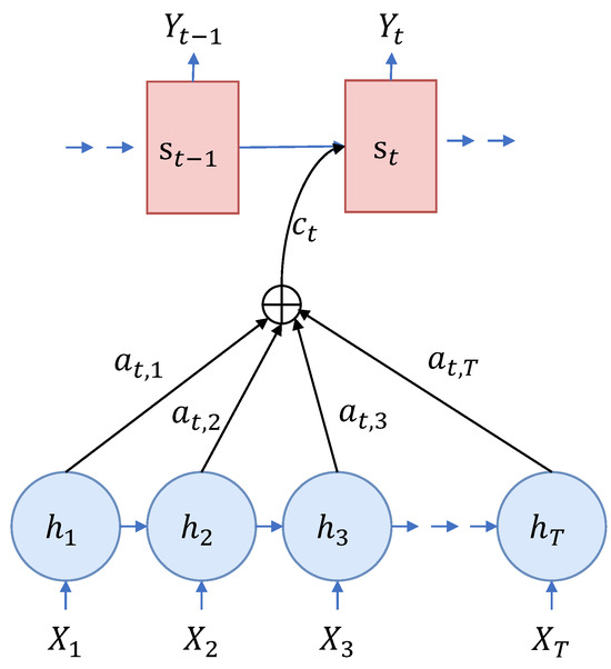 Figure 2 illustrates the structure of the attention mechanism, with indicating the hidden state of the RNN at time step t, which is determined via
