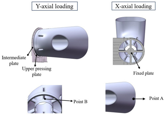 Equivalent stress responses of the scaled model under different axial loadings. (a) X-axial; and (b) Y-axial.
