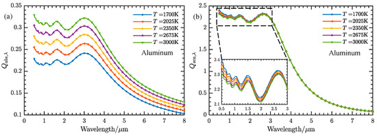Spectral radiation characteristics of 1 µm aluminum droplets at different temperatures. (a) Spectral absorption coefficient. (b) Spectral scattering coefficient.