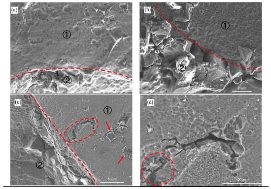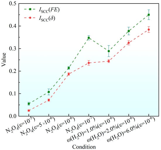 The stress corrosion cracking (SCC) susceptibility of 2195-T8 Al-Li alloy in N2O4 medium was evaluated using slow strain rate testing (SSRT). The electrochemical corrosion behavior and morphological evolution of the alloy under different conditions were further examined through potentiodynamic polarization measurements. The results indicate that with the increase in electrochemical corrosion rate, the corrosion morphology of the alloy extends from localized pitting and intergranular corrosion to severe exfoliation corrosion. In the N2O4 medium, the alloy exhibits significant susceptibility to SCC at tensile rates of ε ≥ 5 × 10−6 s−1. However, when strained at ε = 10−6 s−1, a sudden increase in ISCC is observed accompanied by a transition to brittle intergranular fracture mediated by anodic dissolution. At the same stretch rate (ε = 10−6 s−1), the susceptibility to SCC of the alloy in N2O4 medium increased with higher water content ω(H2O). This trend is attributed to enhanced generation of HNO3 and HNO2, as well as increased diffusion of hydrogen—produced by the cathodic reaction—to the crack tip. The synergistic interaction between anodic dissolution and hydrogen embrittlement ultimately promotes the initiation and propagation of SCC in the alloy. Full article