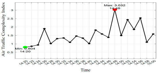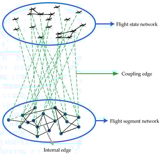 An analysis of air traffic complexity in multi-airport terminal areas can assist air traffic controllers in accurately assessing the air traffic situation and collaboratively managing air traffic flows, thereby enhancing the utilization of airspace resources and reducing flight delays. This paper proposes an air traffic complexity analysis method for multi-airport terminal areas based on a route segment–flight state interdependent network. The interdependent network model consists of an upper-layer flight state network, a lower-layer route segment network, and inter-layer coupling edges. The upper-layer network is constructed with aircraft as nodes and flight conflicts between aircraft as edges. The lower-layer network uses route segments as nodes and the connectivity between route segments as edges. The inter-layer coupling edges are determined by evaluating the relationship between aircraft and route segments—if an aircraft is on a specific route segment, a coupling edge exists between the corresponding aircraft node and route segment node. Based on this model, node-level complexity metrics are established to analyze the importance and complexity of individual route segments. Additionally, network-level complexity metrics are introduced to assess the overall air traffic complexity in multi-airport terminal areas. Finally, the method proposed in this paper is validated using flight scenarios in the Guangdong–Hong Kong–Macao Greater Bay Area. By comparing and analyzing the results with the actual situation, it is shown that the proposed method can accurately assess the air traffic complexity in multi-airport terminal areas. Full article