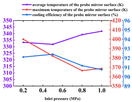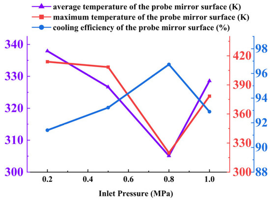 After an aero-engine shuts down, the high temperature within the core flow path prevents conventional borescope probes from performing immediate internal inspections due to their limited thermal resistance, thereby constraining rapid turnaround capabilities for aircraft. To address this challenge, this study proposes an active cooling strategy using coolant flow to keep the probe within a safe temperature range. Three cooling structures incorporating pressure-drop modules—annular, annular-slit, and round-hole configurations—were designed and numerically investigated to assess the effects of geometric parameters and coolant properties (temperature, pressure, nitrogen mixing ratio) on cooling performance. The results demonstrate that the round-hole structure with a 1.0 mm diameter achieves optimal cooling, maintaining an average probe mirror temperature of 286.2 K under coolant conditions of 285 K and 0.5 MPa. Cooling efficiency exhibits a strong linear negative correlation with coolant temperature, while its relationship with pressure is highly structure-dependent. Nitrogen doping significantly improves the heat transfer capacity of the coolant. The implemented three-stage pressure-drop module performs consistently, with the pressure loss per stage determined solely by the inlet pressure. This study provides valuable insights and a theoretical foundation for the design of high-temperature-resistant borescope equipment capable of operating in the harsh environments of aero-engines. Full article