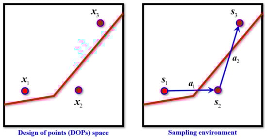 In traditional reinforcement learning frameworks, state representations often rely on discretized sampling spaces, which can lead to excessive computational complexity when dealing with high-dimensional problems. To overcome this limitation, the AC-Kriging method proposes a continuous state representation that efficiently captures the essential information needed for reliability analysis. The state space is defined as a two-dimensional continuous space, where each state, s ∈ Rn, represents the spatial coordinates of an agent. Specifically, s = [x1, x2, …, xn], with xi denoting the agent’s position along the respective axes.