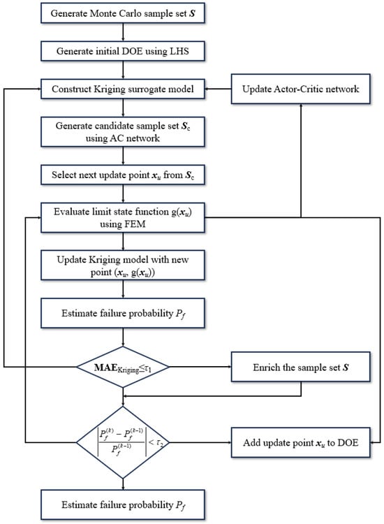 The AC-Kriging method integrates the Actor–Critic network architecture with Kriging surrogate modeling to achieve efficient and accurate structural reliability analysis. This section details the key components of this integrated approach, focusing on the network structure and the adaptive sampling strategy.