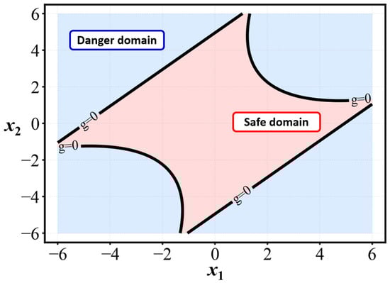 To effectively transform structural reliability analysis into a reinforcement learning problem, the environment is represented as the n-dimensional design space x ∈ Rn, where random variables follow their respective probability distributions. The limit state function (LSF) g(x) partitions this space into failure (g(x) < 0) and safe (g(x) ≥ 0) domains.