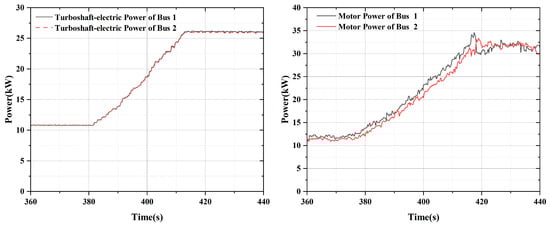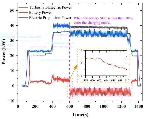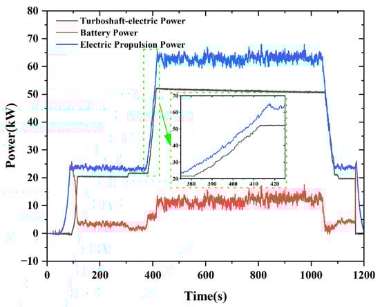 Figure 16 shows the variation curves of the corresponding turboshaft-electric power, battery power and electric propulsion power during the test process.