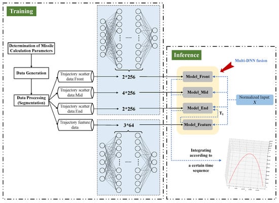 - To fully leverage the advantages of deep neural networks (DNNs), this paper proposes a technical framework based on the segmented trajectory characteristics of rocket-powered vehicles, consisting of data generation and segmentation, segmented training, and multi-model fusion prediction. Monte Carlo simulation experiments were conducted on the final trajectory generator, confirming the effectiveness of the proposed approach.