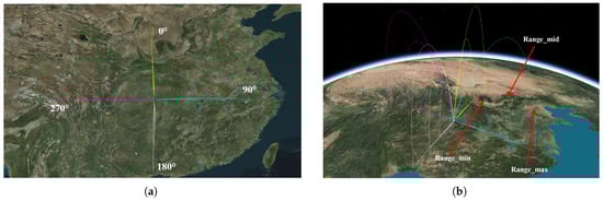 Diagram of gridding: (a) Diagram of the geodetic azimuth gridded. (b) Diagram of the range gridded.