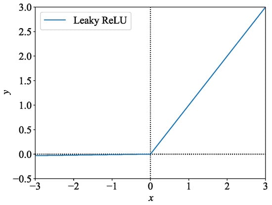 To avoid the problem of neuron death, the LeakyReLU function is chosen as the activation function, as illustrated in Figure 5. The specific expression is