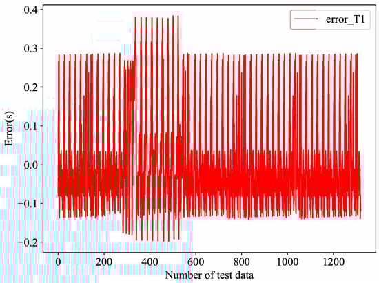 Before comparing the trajectory data, it is important to briefly outline the predictive accuracy of model_Feature, as the algorithm 1 relies on its prediction of T1. Figure 10 illustrates the T1 prediction error curve for the 1320 test cases, with a maximum error not exceeding 0.33 s. This error margin satisfies the accuracy requirements for the overall trajectory prediction.
