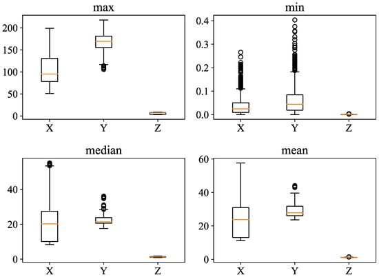 Next, the maximum value, minimum value, median value, and average value of the absolute error corresponding to each trajectory are statistically analyzed, and the following box chart is obtained as shown in Figure 11.