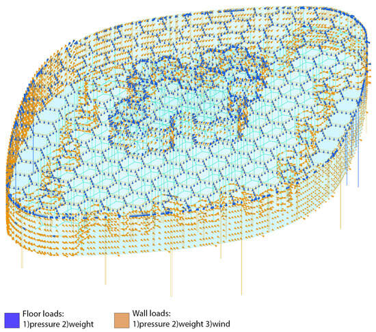 Generally, any structural design must be calculated to resist lateral and vertical loads. Like on Earth, vertical forces on Mars are caused by gravity and include the so-called live and dead loads of the weight. The considered lateral loads on Mars include wind, quakes, and air pressure differences, the latter of which is quite different from a construction project on Earth. The main challenge, therefore, in the structural design of the MHUs is the fact that the exterior envelope must resist the force applied from the interior side caused by the pressure difference. In this paper, these loads are calculated, and then, the proposed structural system is simulated and analyzed to examine its reliability.