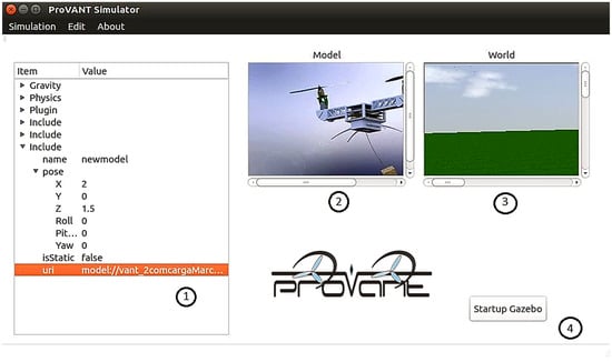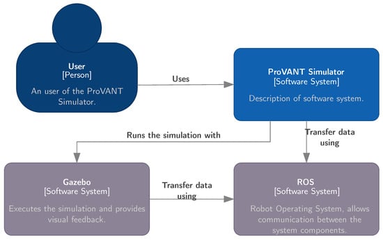 Although the simulator is primarily designed for advancing UAV technologies, its architecture is general enough to accommodate a wide range of robotic systems. The ProVANT Simulator is built on top of the Gazebo engine, leveraging its high-fidelity physics simulation, extensive library of sensors and actuators, and modular plug-in architecture. Gazebo is widely recognized for its realism and reliability and has been adopted by leading organizations such as the Defense Advanced Research Projects Agency (DARPA) (https://spectrum.ieee.org/darpa-robotics-challenge-simulation-software-open-source-robotics-foundation, accessed on 14 August 2025) and the National Aeronautics and Space Administration (NASA). It has also served as the simulation backbone for several high-profile research initiatives [1,2,3].