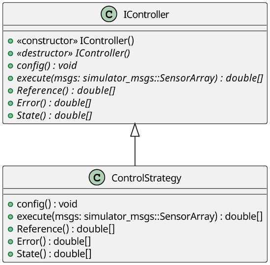 Figure 4 presents the class diagram of the Control Strategy component, which must be implemented by the user when designing a custom control strategy. This implementation is required only if the user wishes to develop a new control strategy. The following methods must be implemented: