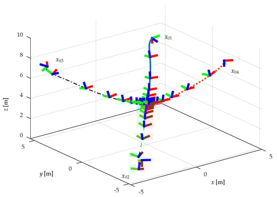 The simulation was carried out on a computer running Ubuntu 20.04, equipped with an AMD Ryzen 7 3700U processor (1.51 GHz, 4 cores, 8 threads—AMD, Santa Clara, CA, USA) and 20 GB of RAM. The UAV parameters are presented in Table 2. The control system was implemented in MATLAB R2017a with the CasADi toolbox [16].
