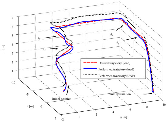 Trajectory tracking in the 3D view of ProVANT UAV 3, resulting from the SIL experiment. This result corresponds to the case study in Section 4.5.