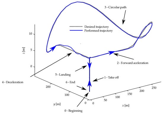 The experiment was executed on a general-purpose notebook equipped with an Intel Core i7 8750H processor (2.2 GHz), featuring six physical cores, twelve logical threads, 24 GB of RAM, and an NVIDIA GTX 1050Ti GPU, running Ubuntu Linux version 18.04. The implemented control strategy combines pre-designed linear controllers to achieve stable trajectory tracking across the entire flight envelope of the ProVANT UAV 3 while mitigating the effects of external disturbances.