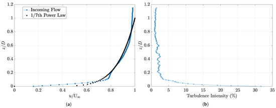 Incoming flow conditions. (a) BL and (b) turbulence intensity.