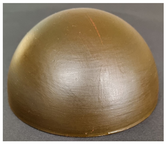 The flexible model is the counterpart to the rigid model, which can freely deform when subjected to an oncoming wind load. To achieve this deformation, a thin-walled hemisphere was created with flexible material. The material used was flexible polyurethane (PU) resin with a shore hardness of A-25. This was selected due to the ease of material acquisition, the simplicity of manufacture, and the replicability of the model creation process. For the testing, the material ideally is not desired to completely deform under the test conditions; however, some minor level of deformation is expected and required to observe the FSI. For this work, the model deformation was not controlled; a controlled variant will be presented in future publications. The two main factors that control the amount of structural deformation of the hemisphere are the shell thickness and the shell material hardness. For this experiment, both are fixed. A shell thickness of D was selected; this is fixed at half the thickness of the rigid shell, as matching the thickness causes little to no observable deformation. Through the process of developing the model, D was selected as a suitable middle ground between the immediate collapse of the structure under wind load and the aforementioned quasi-rigid behaviour of a thicker shell.