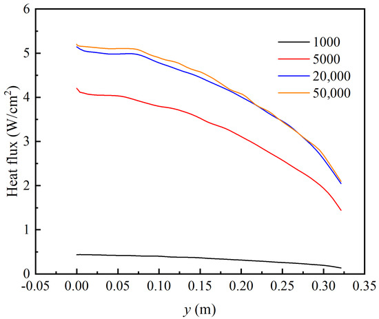 Figure 4 illustrates the effect of varying the number of photons emitted per grid cell on the heat flux distribution. Unlike spectral resolution, photon count does not significantly affect the overall magnitude of radiative heat flux. However, it strongly influences the smoothness and statistical stability of the computed results.