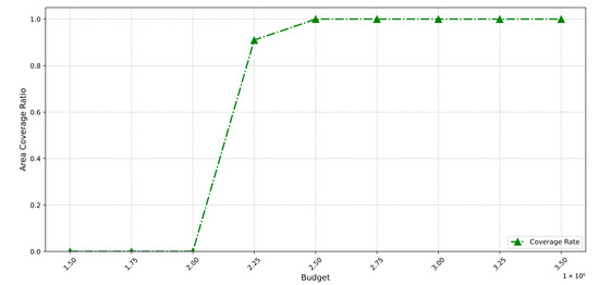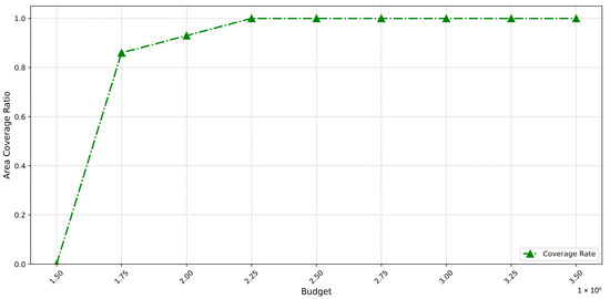 This figure demonstrates the trend of area coverage ratio variation with changes in budget.