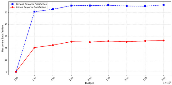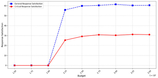 This figure demonstrates the trend of response satisfaction variation with changes in budget.