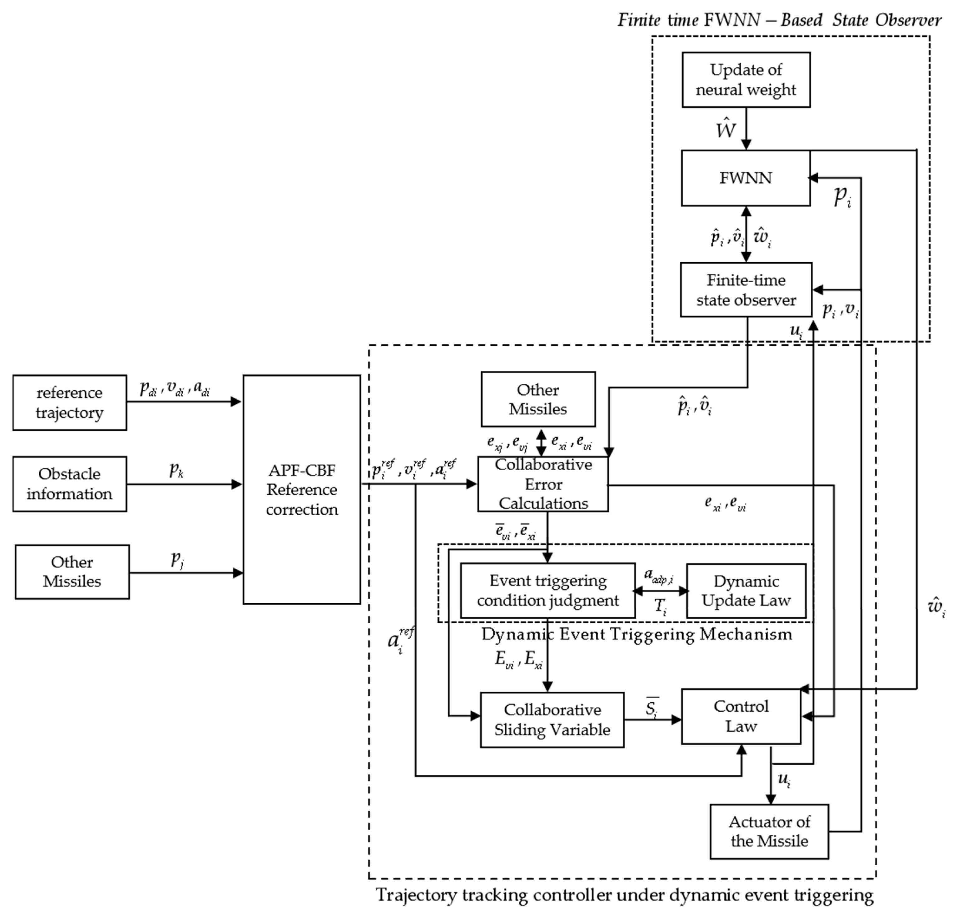 - Li, J.; Tang, Y.; Shao, L.; Bu, X.; Ye, J. Finite-Time RBFNN-Based Observer for Cooperative Multi-Missile Tracking Control Under Dynamic Event-Triggered Mechanism. Aerospace 2025, 12, 693. [Google Scholar] [CrossRef]