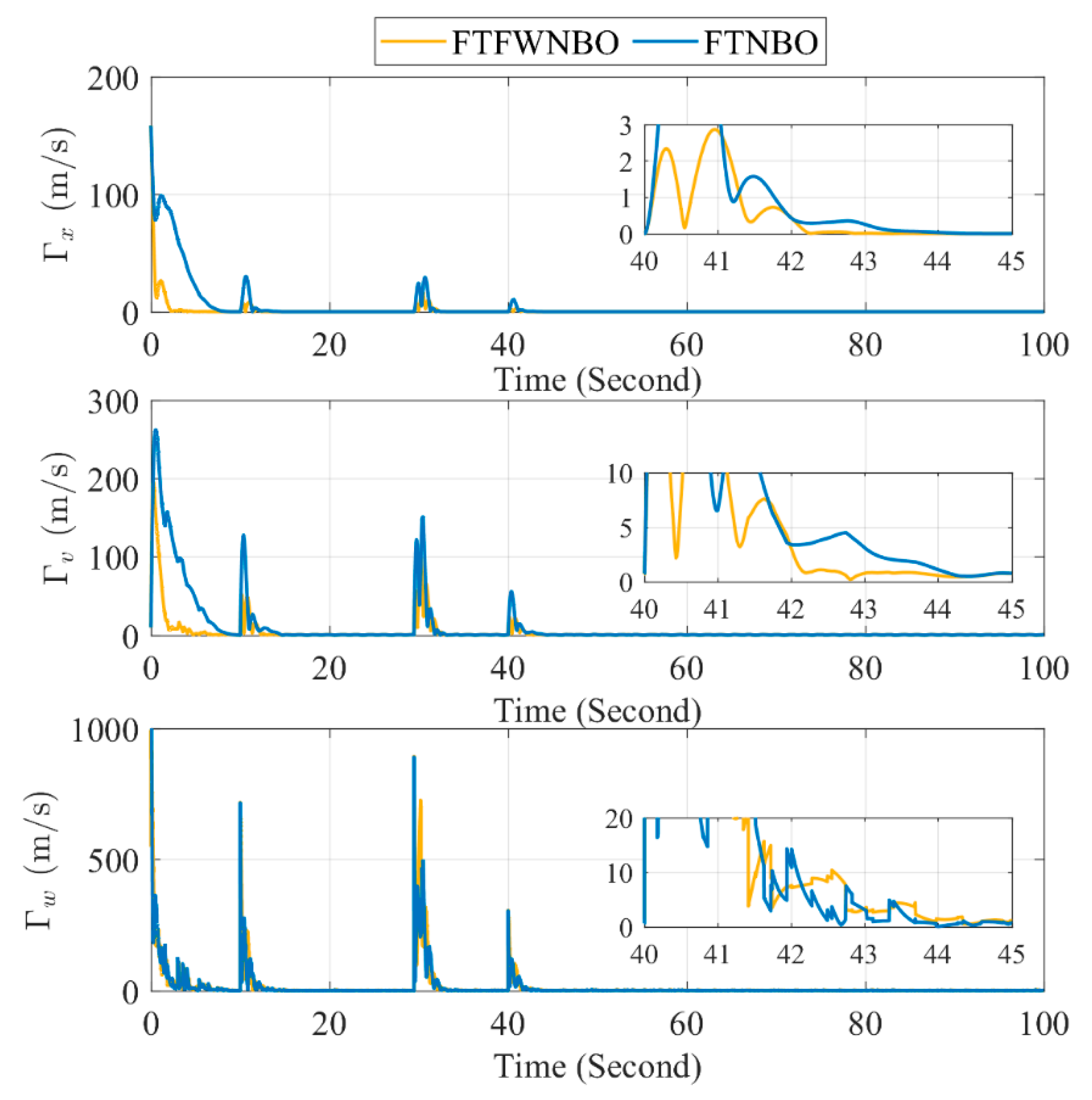 - Since the Fuzzy Wavelet Neural Network (FWNN) [22] integrates the reasoning ability of fuzzy logic with the time-frequency locality of wavelet basis functions, this paper combines FWNN with a finite-time state observer to design a finite-time state observer based on FWNN. It enhances the system’s robustness by estimating unknown states and disturbances in real time;