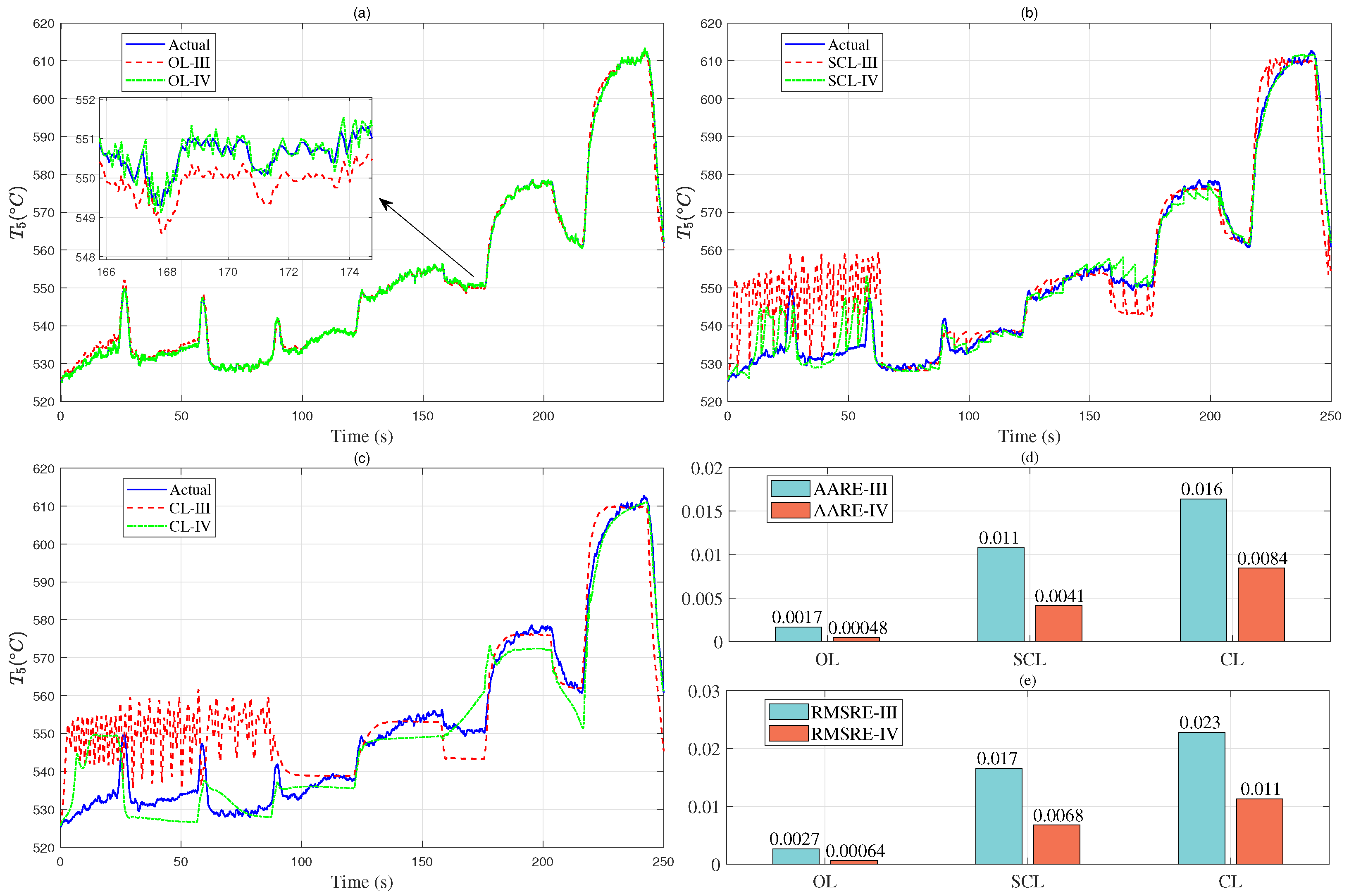 Engineering Applicability: In dynamic system modeling (e.g., NARX), the relative magnitude of prediction errors is often more practically meaningful than absolute errors. For example, in process control, a 10 °C deviation might be catastrophic for a low-temperature reaction (e.g., 50 °C) but acceptable for a high-temperature reaction (e.g., 500 °C). AARE and RMSRE directly reflect the relative impact of errors, aligning more closely with the needs of engineering decision-making.