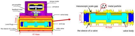 In studies concerning the influence of particle behavior on pump and valve system performance, Zhang Yuliang et al. conducted numerical simulations of solid–liquid two-phase flow in centrifugal pumps, and the results demonstrate that an increase in particle diameter or concentration leads to reduced pump efficiency [19]. Liu Xinqiang et al. investigated the impact of solid particles on spool valves without orifices and found that particles in the fluid are the primary cause of port corrosion damage [20]. In hydraulic servo valves, viscous heating during operation may induce spool deformation, which in turn results in hydraulic sticking phenomena.