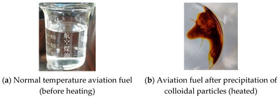 Heating tests on aviation fuel revealed a nonlinear relationship between colloidal concentration and temperature, with the generation rate of colloids accelerating at higher temperatures. Fundamental physical properties of colloidal particles—including a Young’s modulus of 688 MPa, a Poisson’s ratio of 0.39, and a surface energy of 77 mJ/m2—were experimentally determined, supplying reliable parameters for the collision model. Particle size distribution analyses characterized the size distribution of colloidal particles within the fuel.