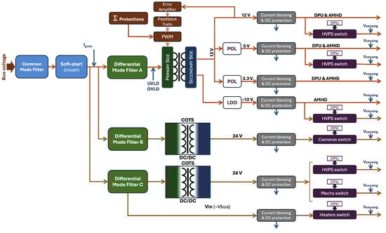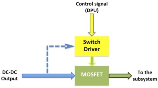 Each subsystem power line, with the exception of the DPU and AMHD, is equipped with an ON/OFF switch and its corresponding driver circuitry; a simplified block diagram of the switching concept is shown in Figure 6. These switches enable individual activation or deactivation of the power outputs.