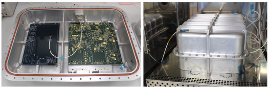 This strategy aligned with the decision to rely primarily on commercial electronic components, providing enhanced design flexibility, shortened procurement lead times and cost reduction is well suited to a stratospheric balloon mission. Notwithstanding these advantages, several critical factors must be mitigated to ensure reliable performance at altitude. Of particular importance is the requirement that the electronic unit (E-Unit) be housed within a sealed, pressurised enclosure filled with dry air or nitrogen, in order to prevent condensation and humidity-related malfunctions under low-pressure and variable-temperature conditions [16]. Another critical point is the operating temperature and the thermal issues that defined the E-Unit coating. Even more critical is the ascent temperature profile, which drops below −50 °C. In addition, a mission with optical elements leads to strong constraints in the bill of materials, focusing the problem on outgassing parameters. The O-ring material selection that seals the two halves of the enclosure of the Electronic unit was a critical step [17]. Moreover, to allocate a High Voltage (HV) connector for ±4 kV, facing a close-to-vacuum environment outside (close to the minimum of Paschen’s law, i.e., significant risk of arcing), was also a critical issue in the project. That is why a tailored design had to be produced.