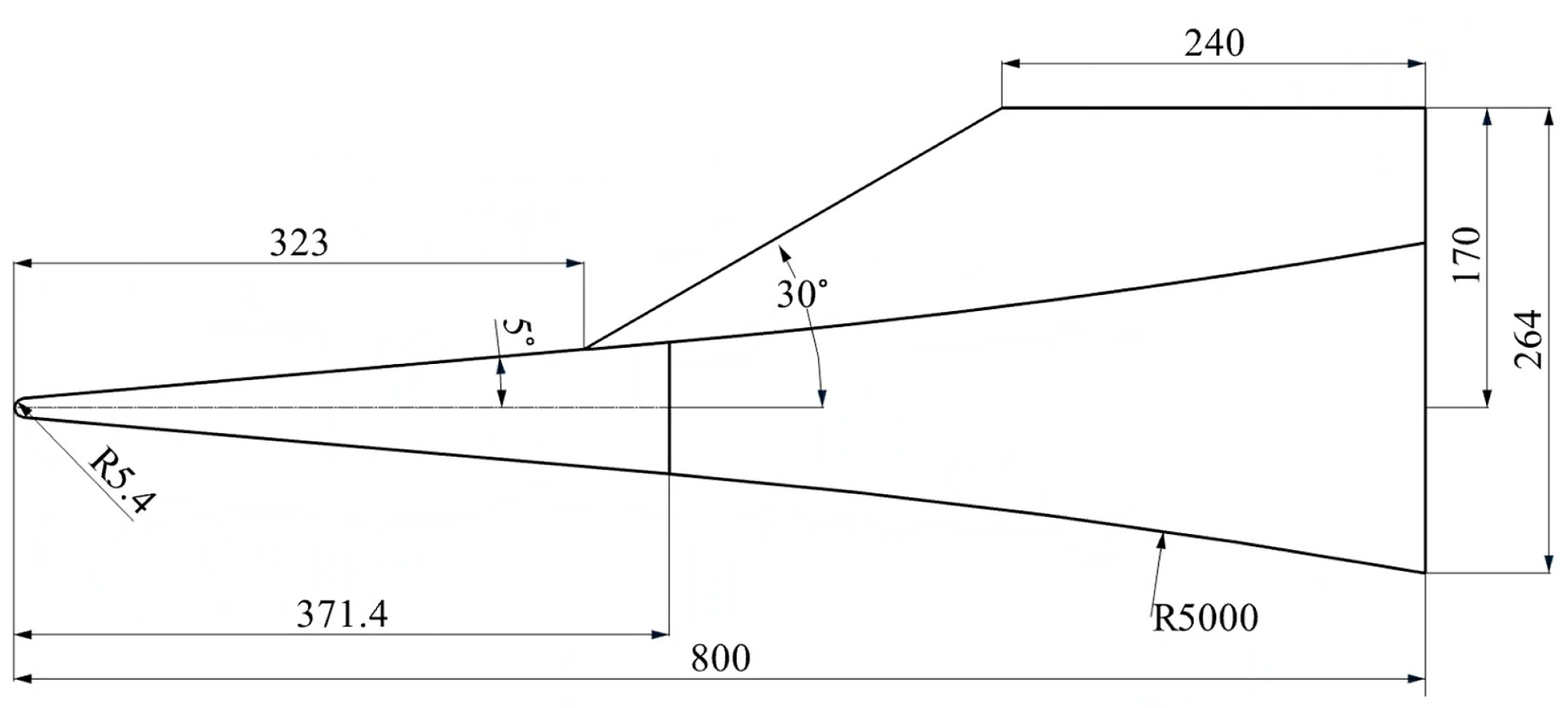 Figure 9 presents the streamwise heat flux distributions on the surface of the flared cone–swept fin configuration at