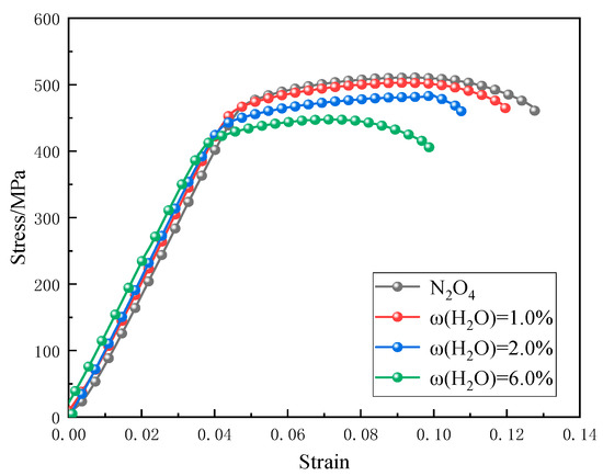 Stress–strain curves of 2195-T8Al-Li alloy in different ω(H2O)N2O4 contents.