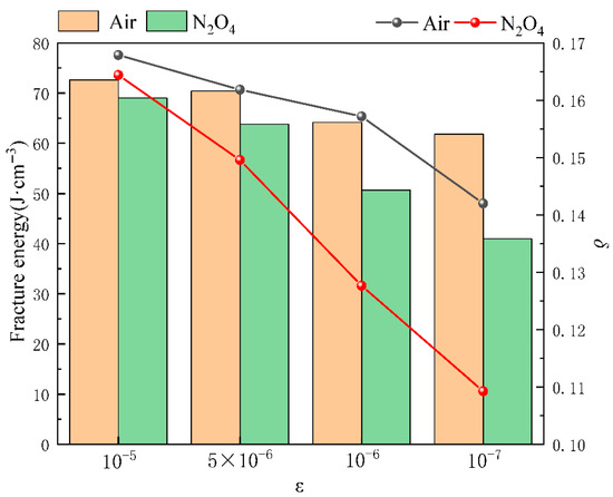 where FEmedium and FEair represent the fracture energy of the specimen in corrosive medium and air, respectively; δmedium and δair represent the fracture elongation of the specimen in corrosive medium and air, respectively. The fracture energy and fracture elongation of the 2195-T8 Al-Li alloy under different corrosive medium and tensile rates are presented in Figure 16 and Figure 17, respectively. In Figure 16 and Figure 17, the bar chart represents fracture energy, and the line graph represents fracture elongation.