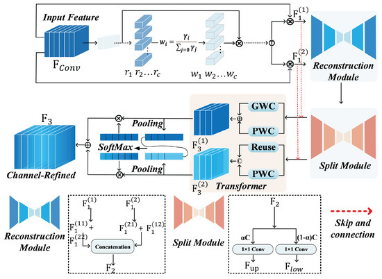 - Li, J.; Wen, Y.; He, L. Scconv: Spatial and channel reconstruction convolution for feature redundancy. In Proceedings of the IEEE/CVF Conference on Computer Vision and Pattern Recognition, Vancouver, BC, Canada, 17–24 June 2023; pp. 6153–6162. [Google Scholar]