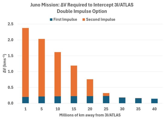This value is similar to the required V for Juno to intercept 3I/ATLAS, given in Table 1, Table 2 and Table 3.