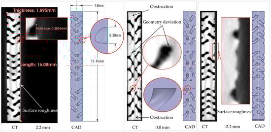 The CAD model is designed with a 1.8 mm wall thickness to demonstrate printing capabilities, as seen in Figure 17b, and an enlarged view of the as-printed part is shown in Figure 17c. The resulting component is analyzed using high-resolution CT scanning, supported by the Instrumental Analysis Center at Shanghai Jiao Tong University. The analysis of the manufacturability features is presented, with critical regions highlighted in Figure 17d.
