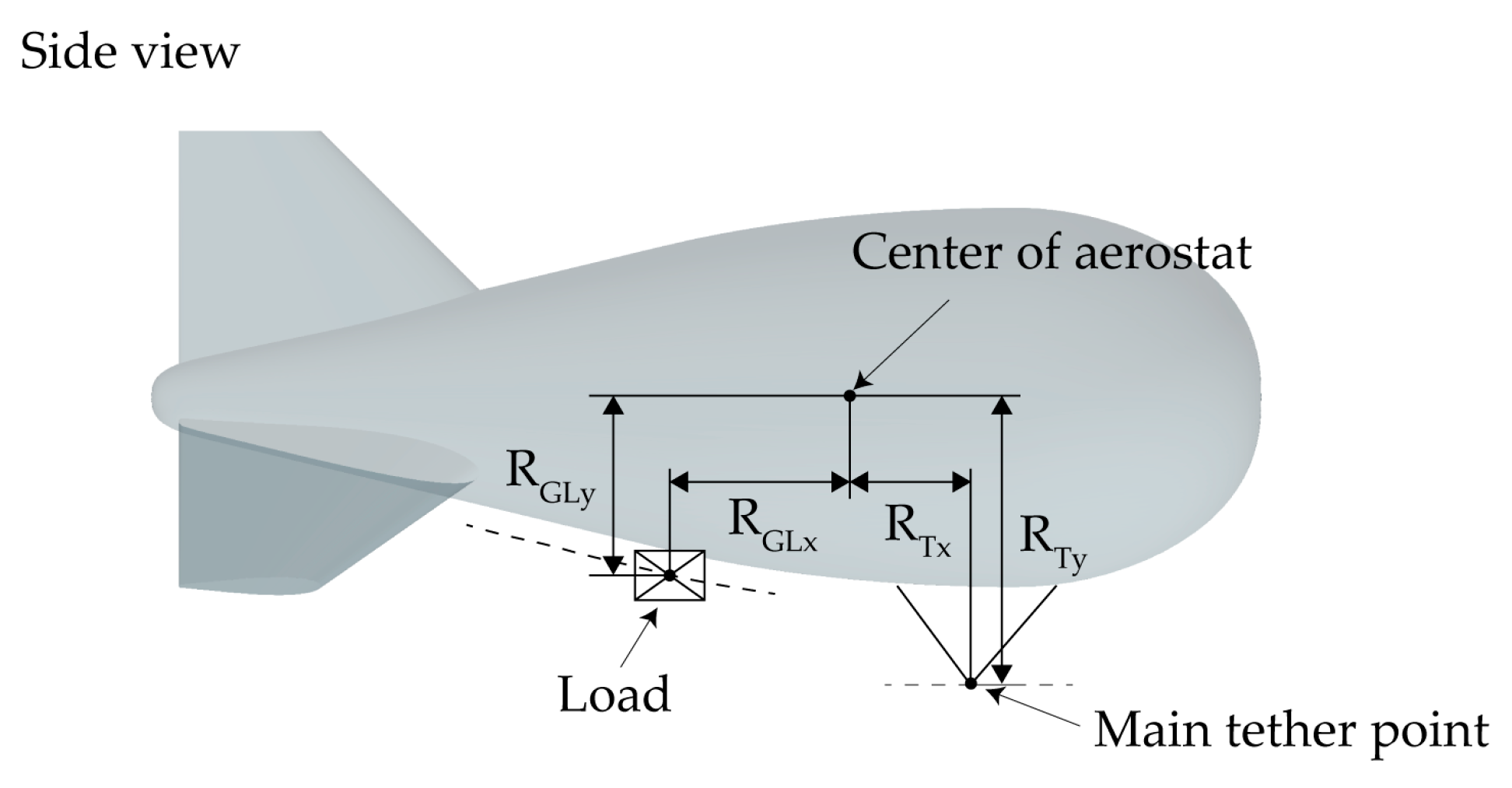 17] but also significantly alter the distribution of the moments of inertia, thereby exerting a substantial influence on lateral stability. In this study, both the payload and the tether interface are positioned at the bottom of the aerostat envelope. When the lateral coordinate of the payload center of gravity,