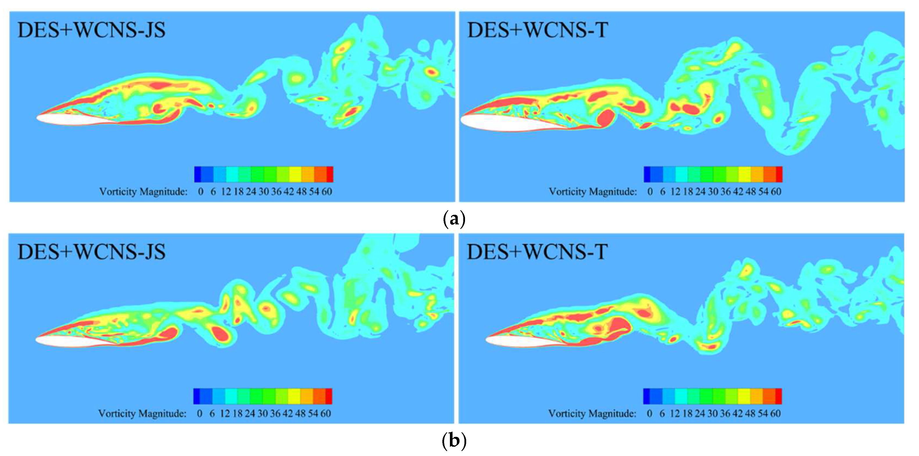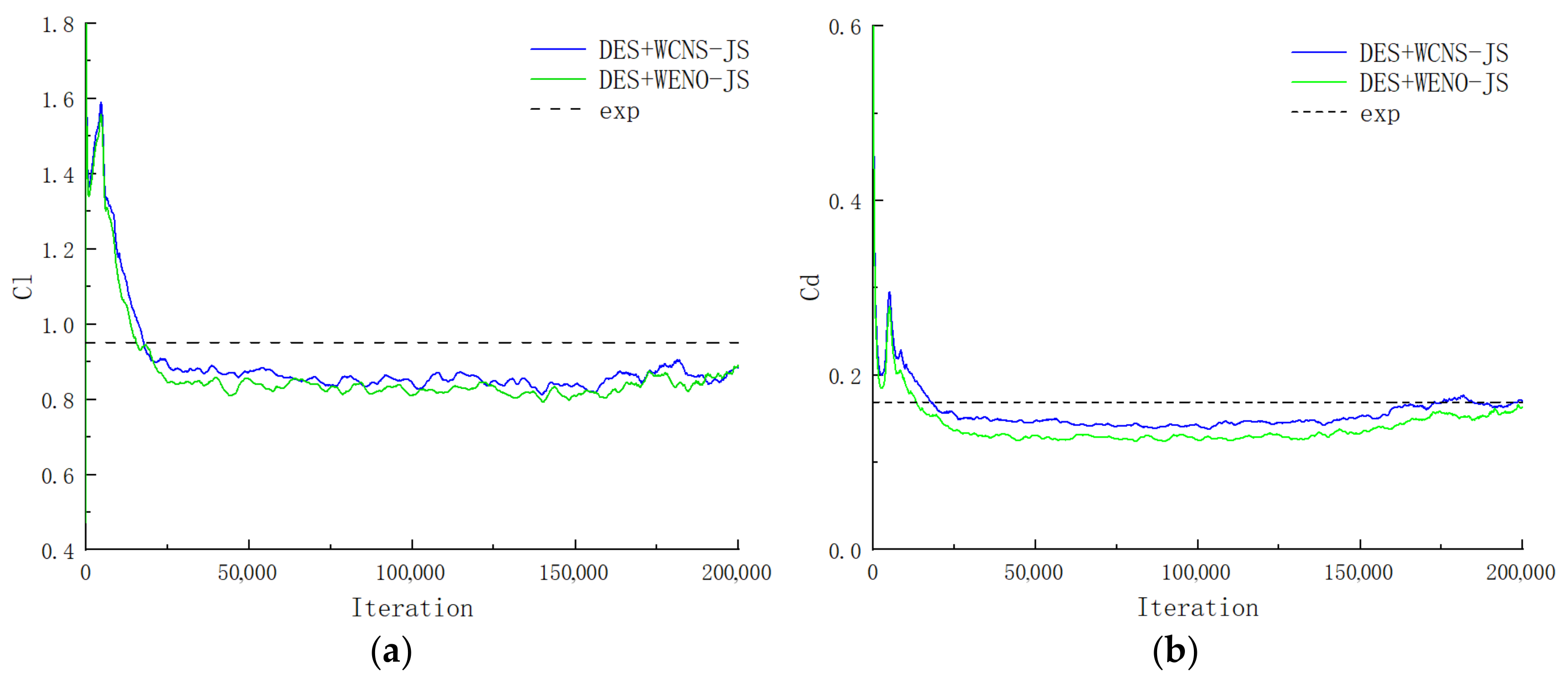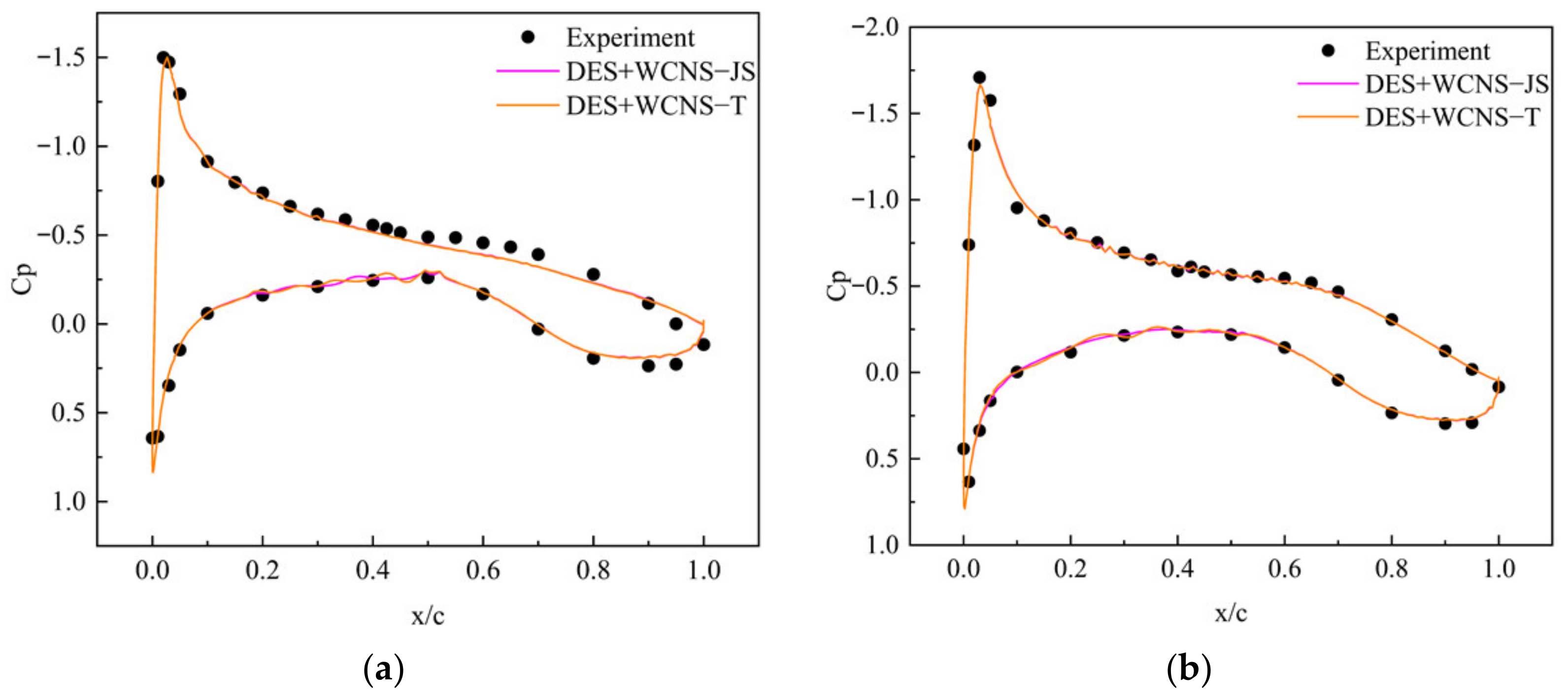 - Li, S.; Wang, G.X.; Wang, Y.T.; Zhang, Y.L.; Deng, X.G. Application research of WCNS scheme in simulation of trapezoidal wing high-lift configuration. Acta Aerodyn. Sin. 2014, 32, 439–445. [Google Scholar]