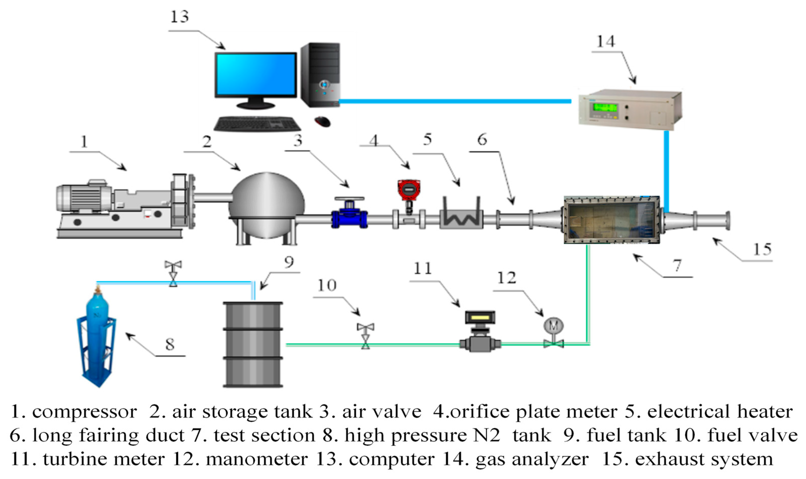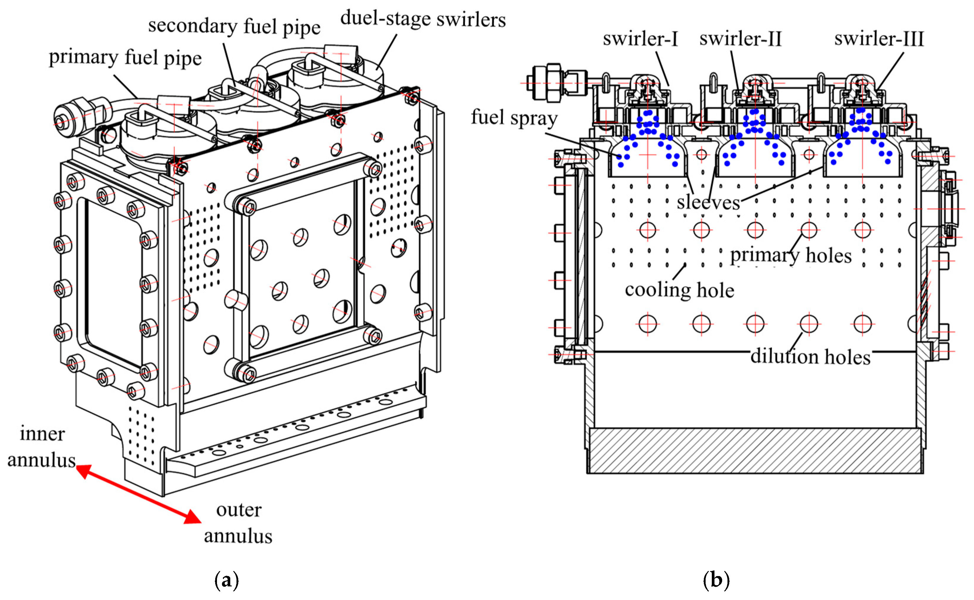 - Zhao, Y.; He, X.; Li, M.; Lu, R.; Yao, K. Ignition, efficiency and emissions of RP-3 kerosene in a three-staged multi-injection combustor. Fuel Process. Technol. 2021, 213, 106635. [Google Scholar] [CrossRef]