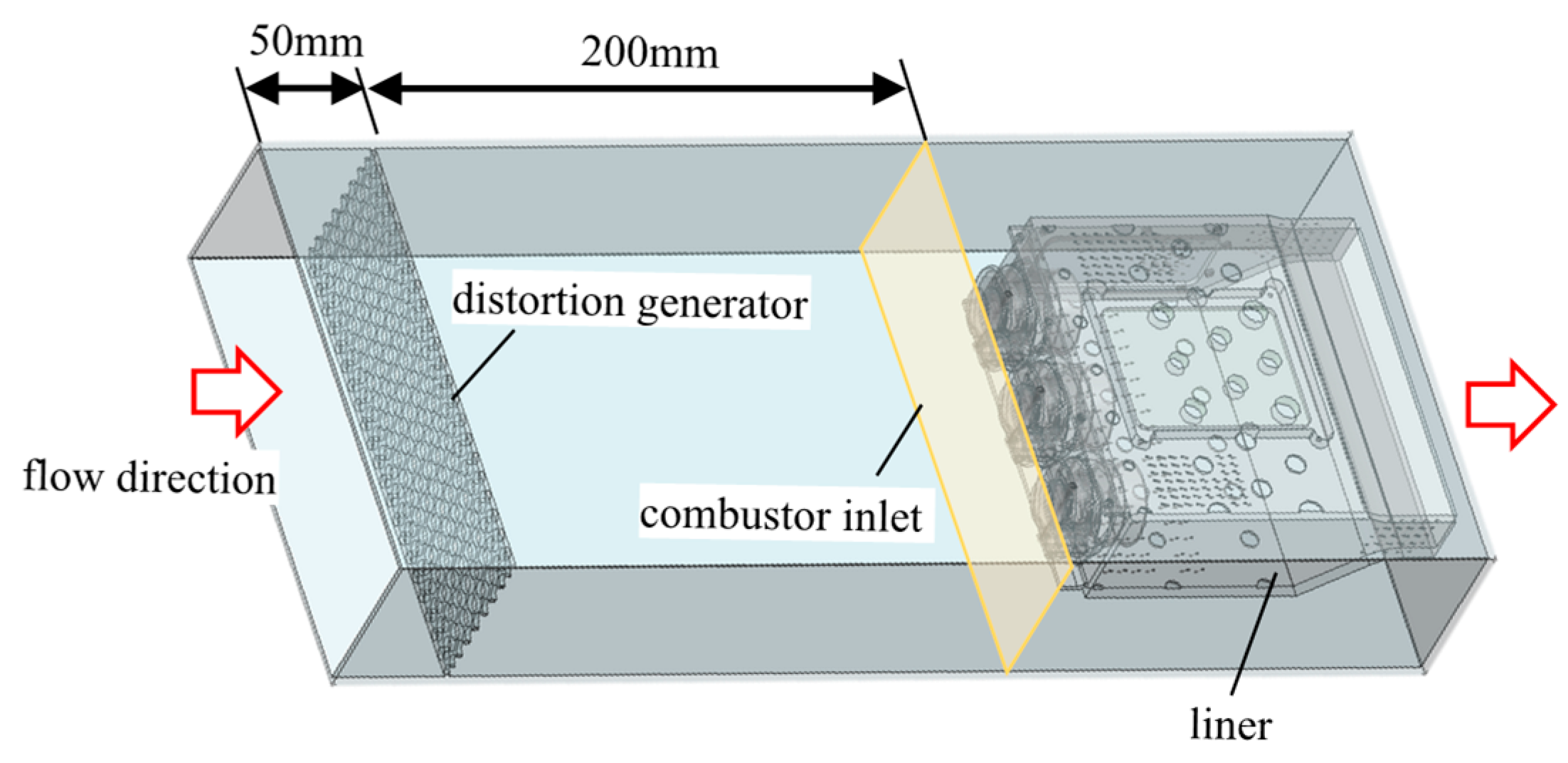 - Yang, R. Influence of inlet flow distortion on combustor performance. Aeroengine 1994, 3, 28–33. [Google Scholar]