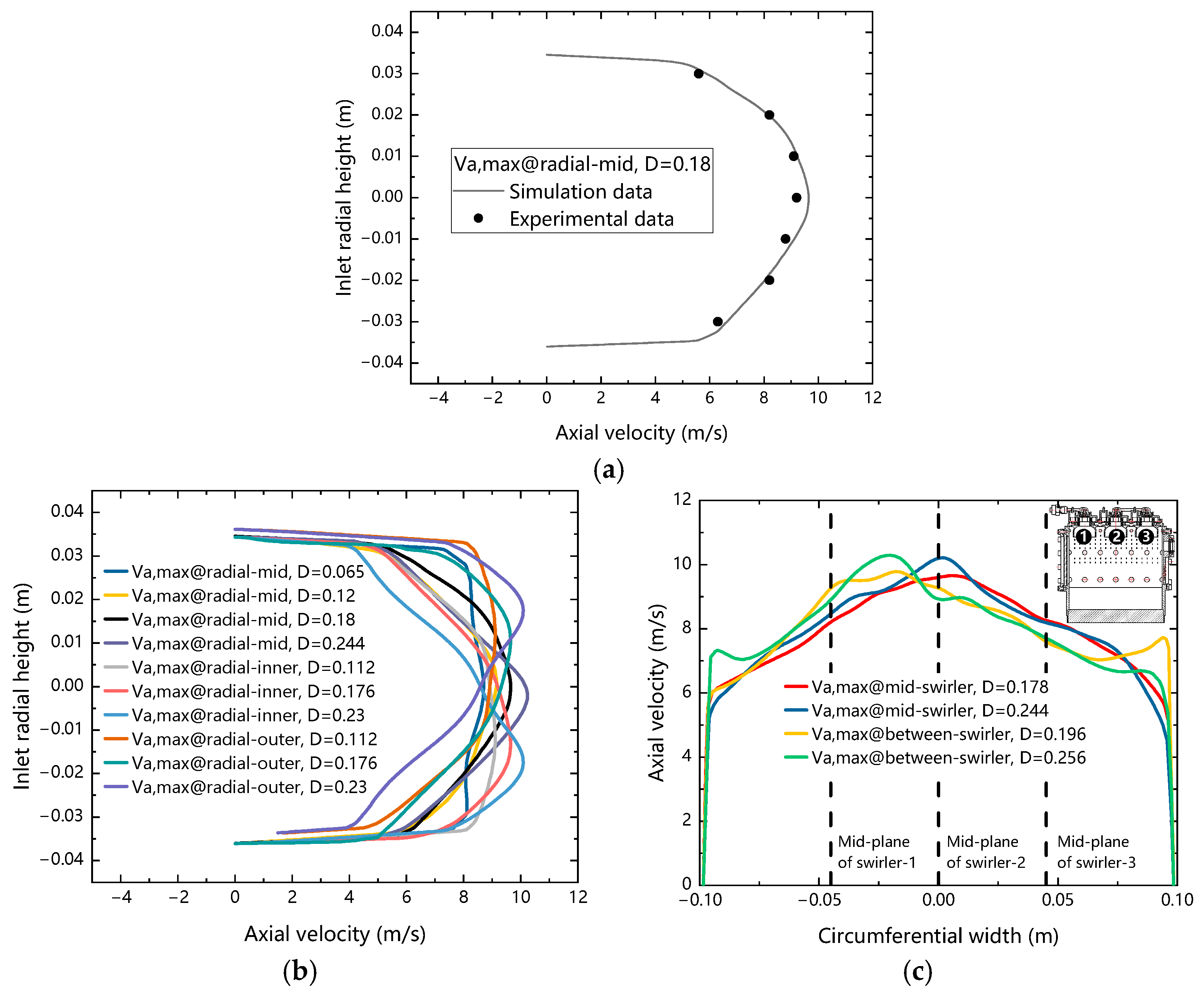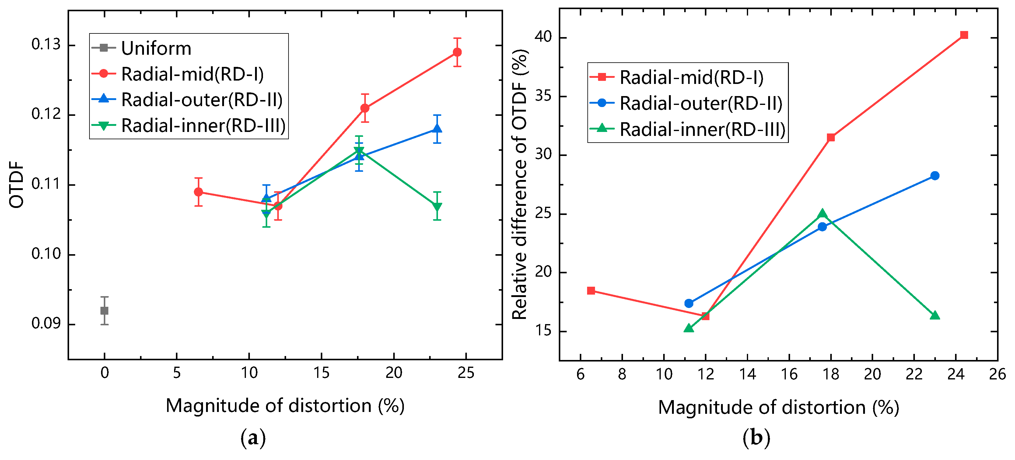 3.2. Influence of Radial Velocity Distortion on Exit Temperature Profile