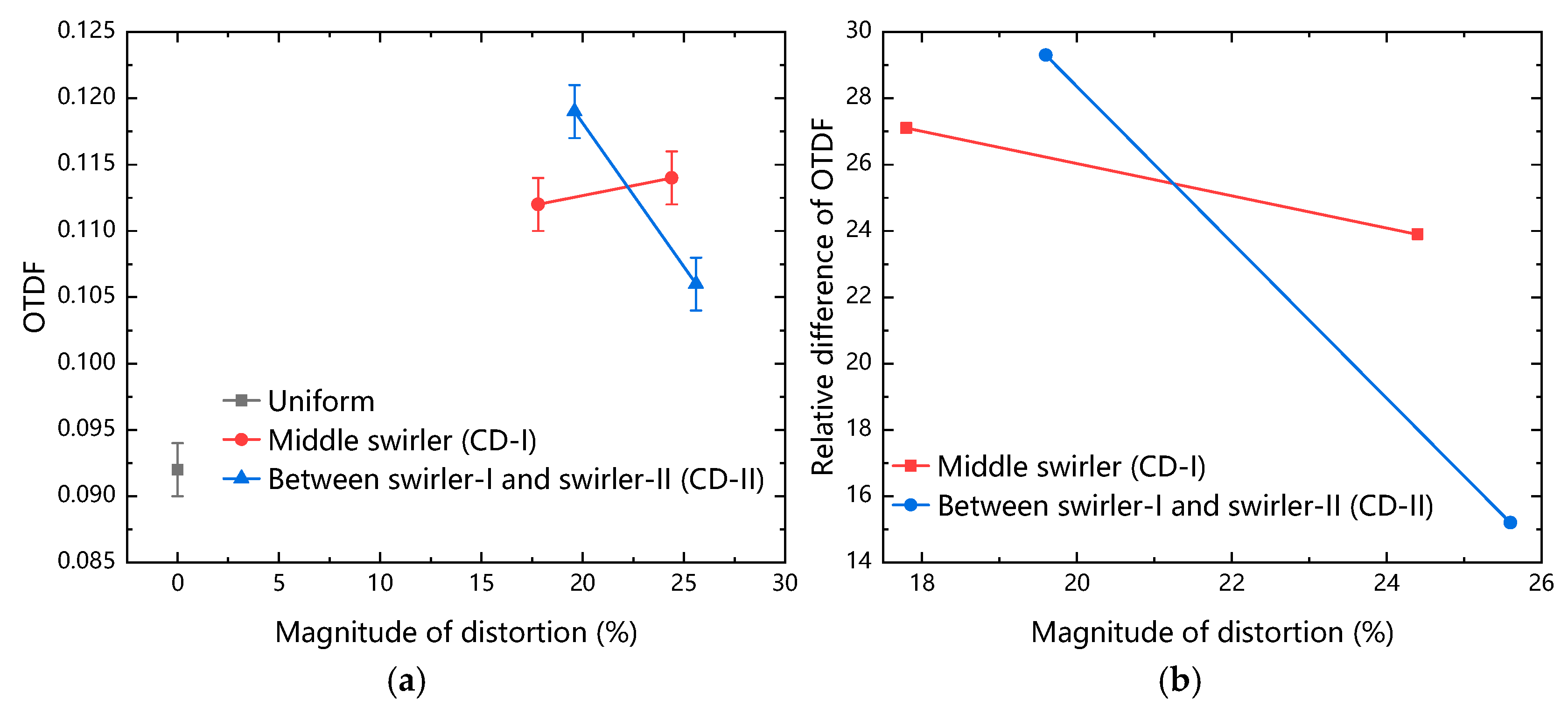 | Circumferential distortion (CD) | Middle swirler (CD-I) | 17.8% |