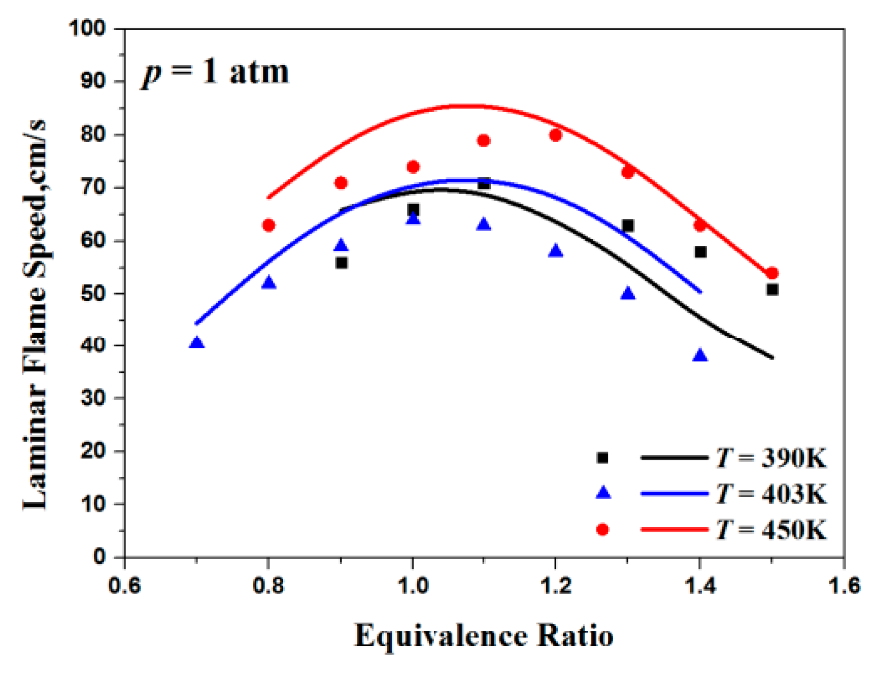 Appendix A.2.2. Laminar Flame Speed Comparison