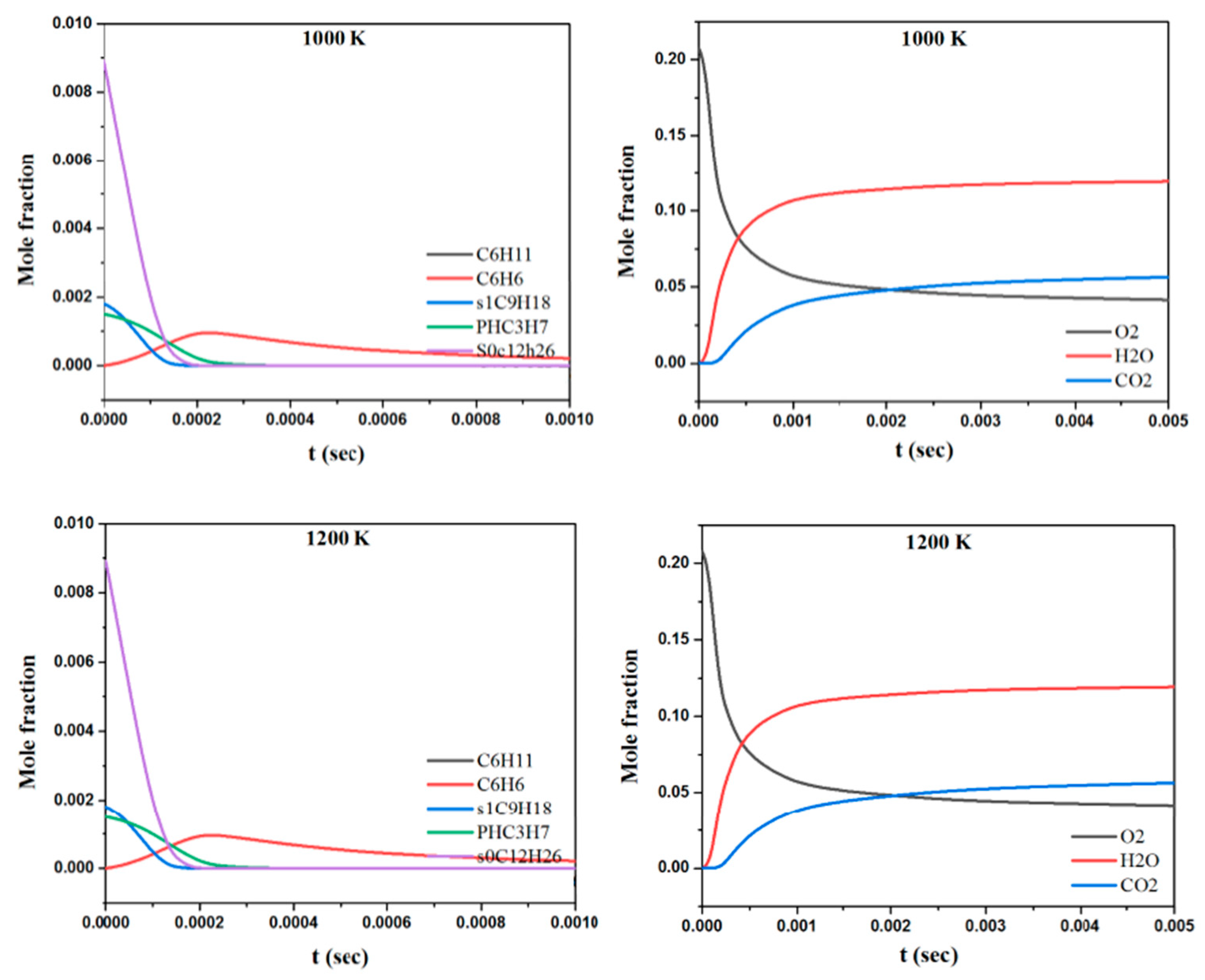 - A wide-temperature-range two-parameter skeletal mechanism with a three-component surrogate fuel model, comprising mass fractions of 73.0% n-dodecane (s0C12H26), 14.7% 1,3,5-trimethylcyclohexane (s1C9H18), and 12.3% n-propylbenzene (PHC3H7).