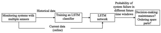 Many researchers have applied complex neural networks to aircraft engine fault diagnosis and prediction. Fu et al. [74] used a Denoising Autoencoder to address insufficient fault samples, enabling diagnosis with small datasets. Building on this, Zhong et al. [75] integrated a Deep Belief Network (DBN) with sampling and ensemble techniques to construct a model for unbalanced fault samples: DBN extracts features from historical flight data, sampling balances the dataset, and ensemble methods classify faults. Shapiai et al. [76,77] proposed a wavelet transform-based neural network for monitoring aero-engine blade faults, using statistical parameters from wavelet coefficients as inputs, achieving 88.43% accuracy in blade fault classification. Wang et al. [78] applied a Multiple Channel Convolutional Neural Network (MCNN) to diagnose wind turbine blade angle abnormalities, surface damage, and fractures for blade condition monitoring. Nguyen et al. [79] designed a Dynamic Predictive Maintenance (DPM) framework using long short-term memory networks (LSTM) for turbine engines, demonstrating superior performance compared with planned maintenance (Figure 8). Wang et al. [80] introduced a nonconvex sparse regularization method, offering both ex-ante interpretability in network design and ex-post interpretability in learning results, to identify convolutional parameters and fault features linked to fault mechanisms.