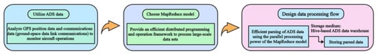 Managing massive QAR data requires a powerful data engine for efficient collection, storage, processing, and analysis to support data-driven maintenance. Distributed storage systems such as Hadoop Distributed File System (HDFS) are widely used for their high throughput, scalability, and support for backup and recovery. For processing, frameworks like Apache Spark and Hadoop MapReduce enable distributed computing, parallelizing large-scale data tasks and supporting real-time, batch, and interactive analysis. Feng et al. [104] built a QAR data warehouse on Hadoop Hive, designing its architecture and storage structure around Hive and QAR data characteristics. In further work, Feng [105] used MapReduce (Figure 10) to parse data from the Aircraft Detection System (ADS), a GPS- and data-link-based monitoring system, and stored the results in Hive’s ADS warehouse. Recently, Lakehouse architecture has emerged, integrating the structured management of data warehouses with the low-cost flexibility of data lakes.